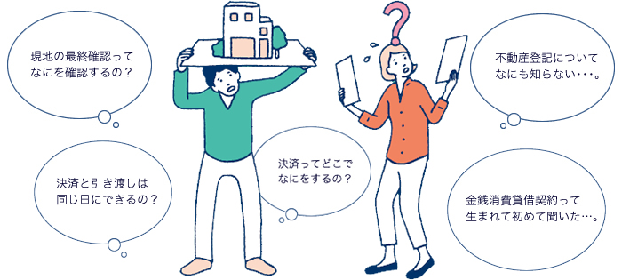 残代金決済は、住宅ローンをご利用になる金融機関で平日の営業日に行いますので、ご注意ください。お引き渡し後は、司法書士が登記申請を代行いたします。