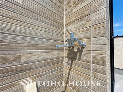 「ルーフバルコニー 水栓」バルコニーに水栓がございますので、お掃除などのお手入れはもちろん、家庭用プールや家庭菜園などの際にあると役立ちます。