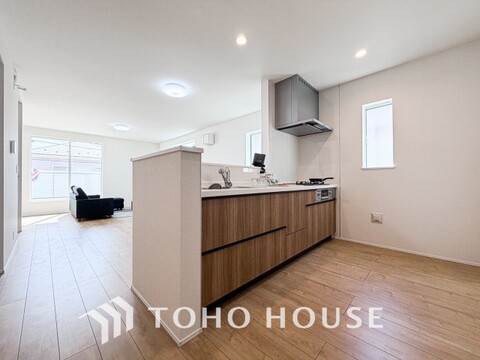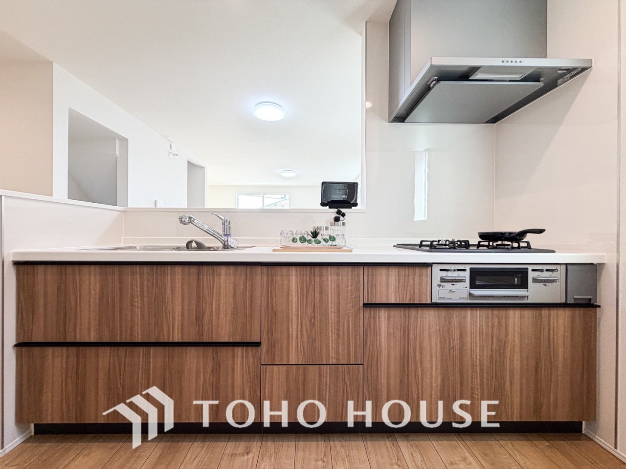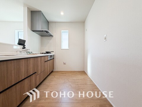 夫婦そろってキッチンに立っても調理がしやすく余裕の広さ。家事をしながら会話も弾みます。
