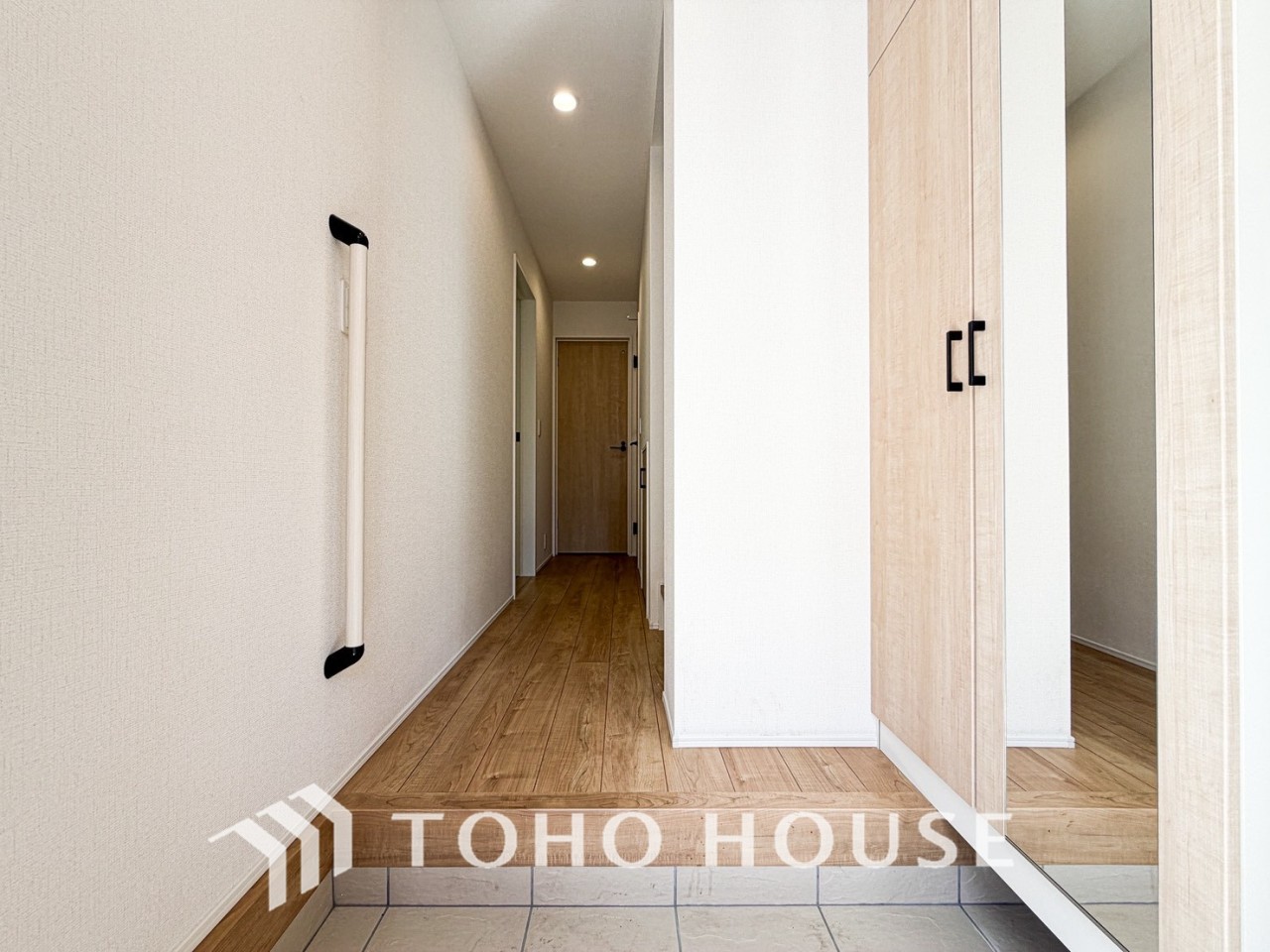 玄関そばの廊下収納。日用品のストックや防災グッズを置いたりと、何かと便利に使えます。