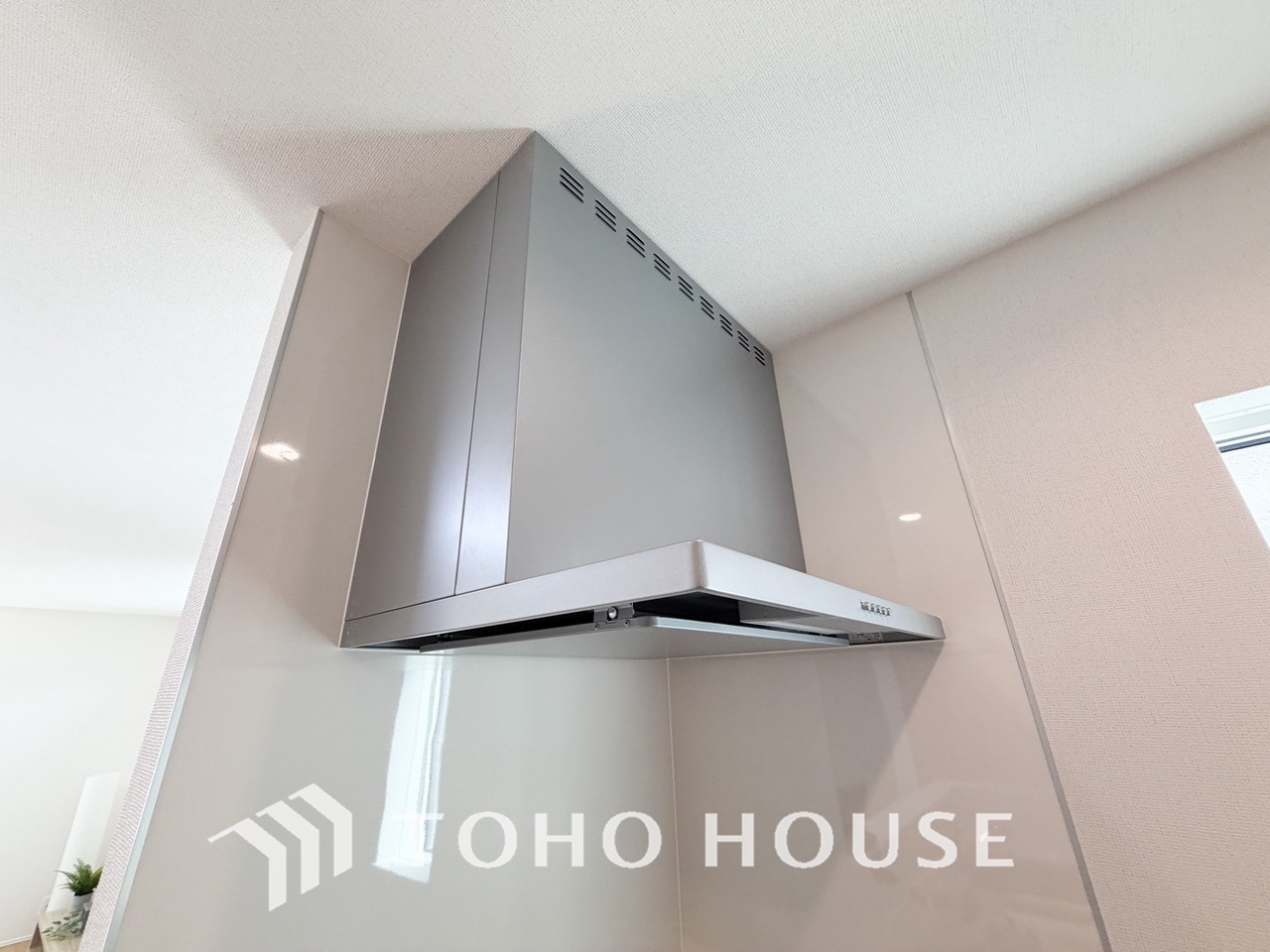 昨今主流のスリムタイプのレンジフード。スタイリッシュな見た目からインテリアとしても人気がある型です。