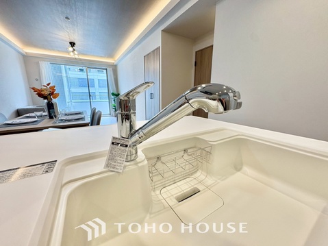 充実した収納スペースを搭載したシステムキッチンは、日々の家事がはかどります。