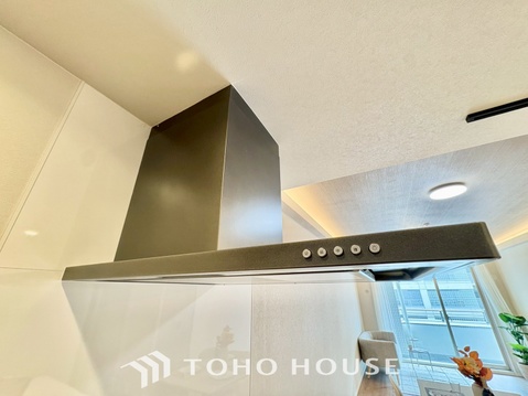 見た目すっきりのスリムタイプのレンジフード。掃除のし易さも◎です。