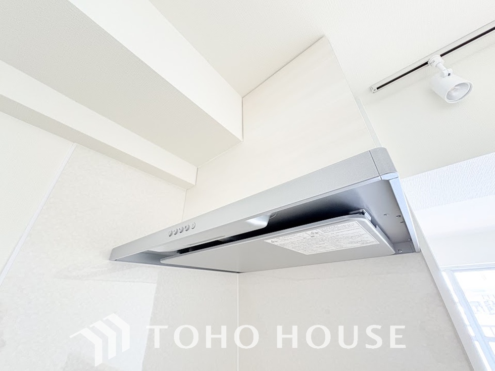 見た目すっきりのスリムタイプのレンジフード。掃除のし易さも◎です。