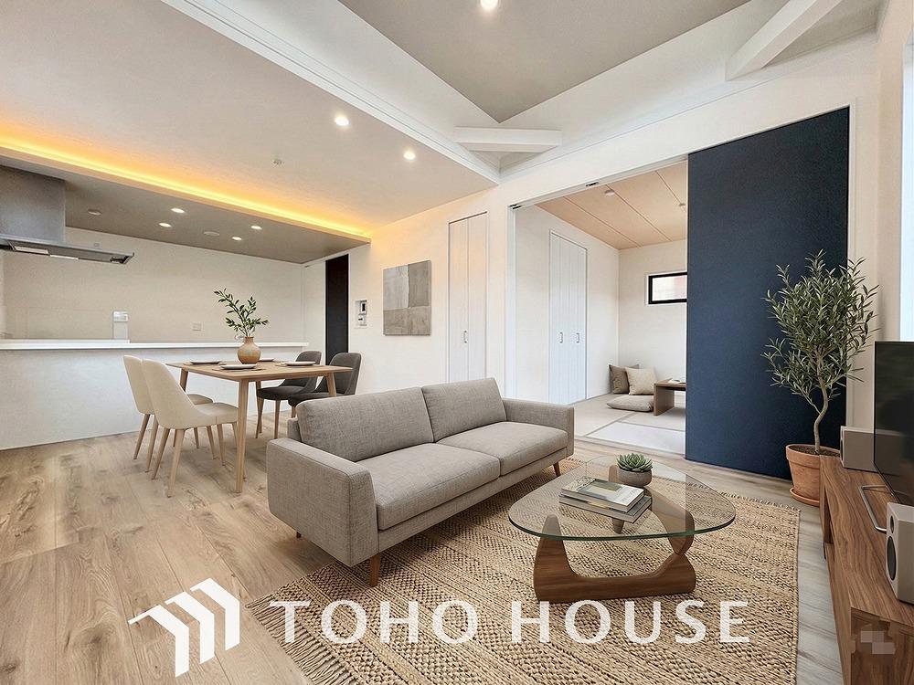LDKでは家族が集まり、明るく穏やかな空気のなかで飲んだり、食べたり、笑ったり。