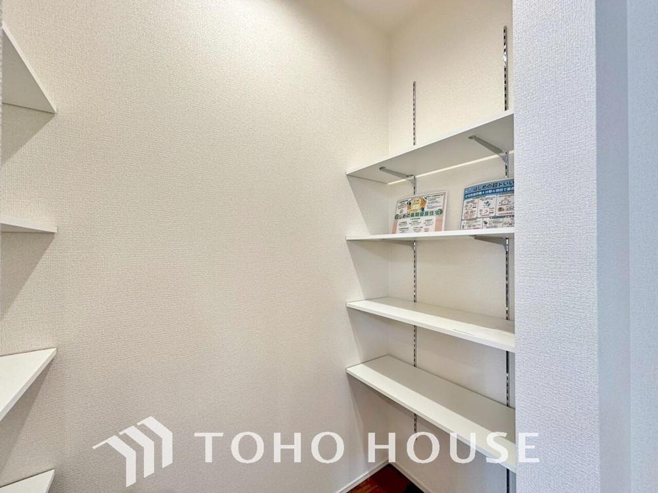 建物内部の収納には拘りました。共有部分に設けた収納。お荷物が多い方にも安心です。