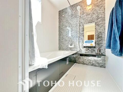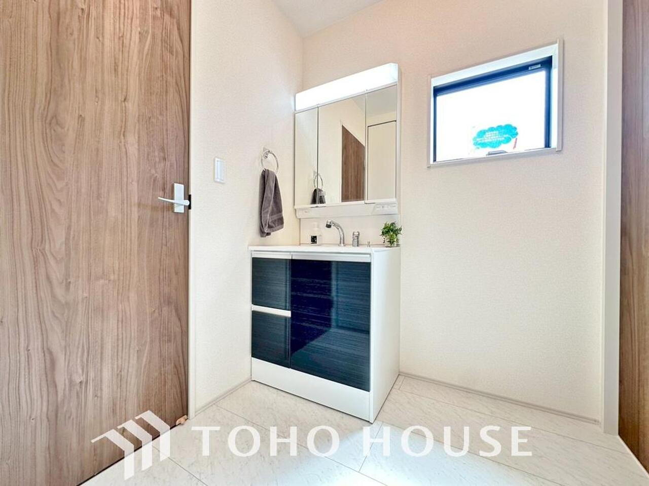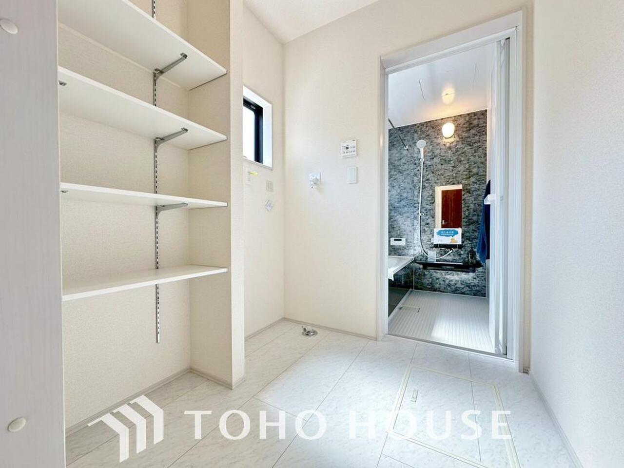 お家の中でも特にプライベートスペースとなる洗面所は、洗濯場所と浴室を同じ空間でまとめております。