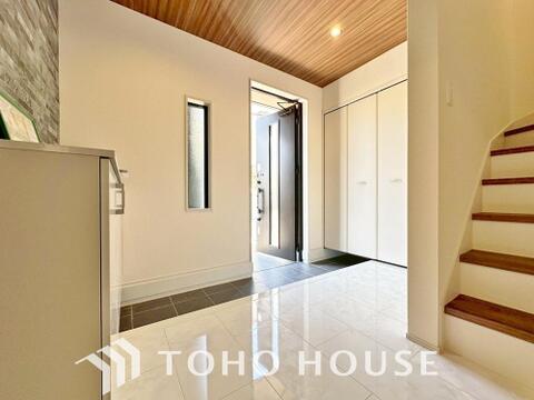 広々とした玄関スペースは何かと重宝します。ベビーカーも楽々置けるゆったりスペースが魅力です。