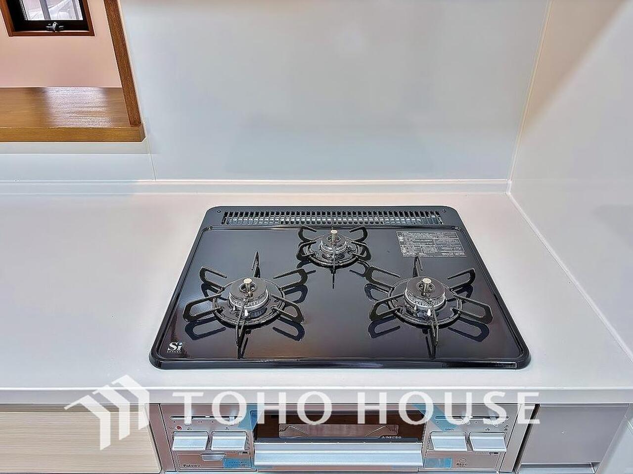 3口コンロは一度に複数のお料理を作ることができるメリットがあります。毎日のキッチンタイムを効率よく。