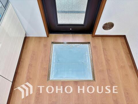 キッチン下部に設けた床下収納は、缶詰のストックや非常食、梅酒や味噌などの保存食入れとしての他、卓上プレートや季節家電などの物を仕舞うことが出来る便利な収納。