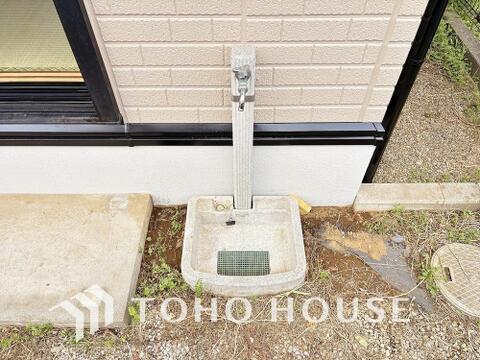 外には立水栓を設置してありますで、大切なお車の洗車にも汚れた靴を洗ったり、庭の植栽への水やりにも便利な設備です。
