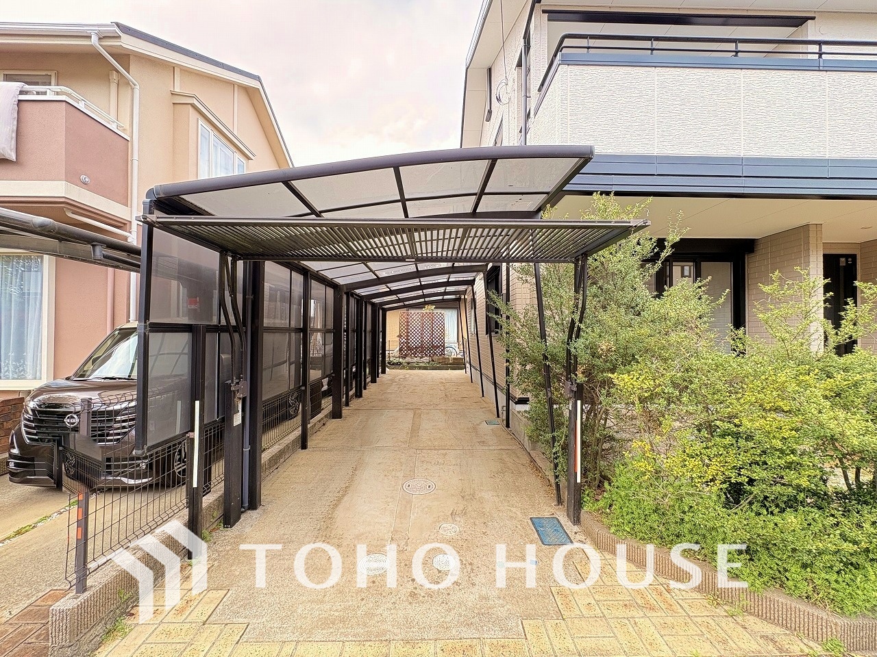 屋根付きの駐車場は雨の日に濡れずに乗り降り可能で、車も汚れにくくなるのが最大のメリットですね。