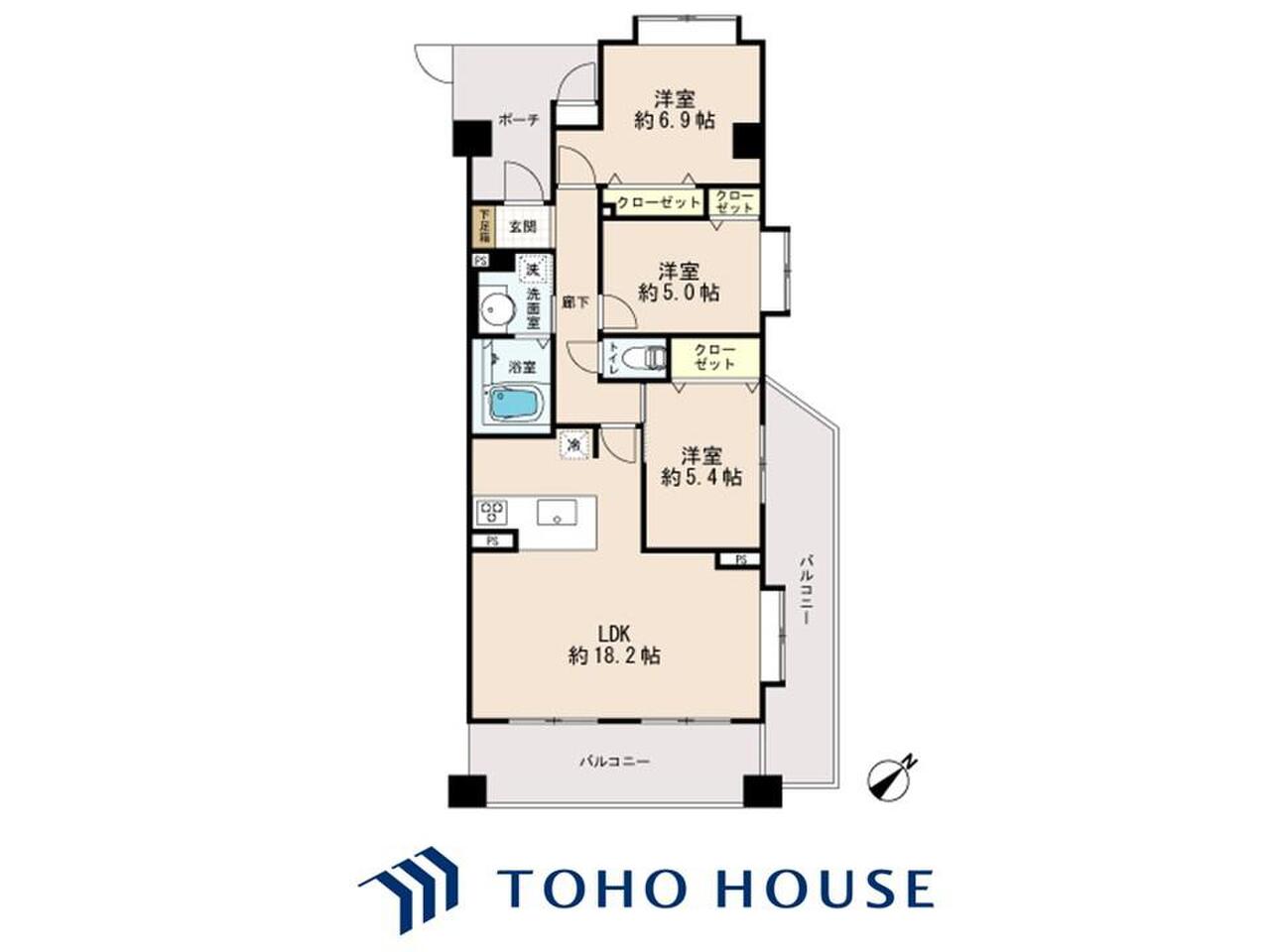 | 間取り | 3LDK | 専有面積 | 76.19m²(壁芯) |