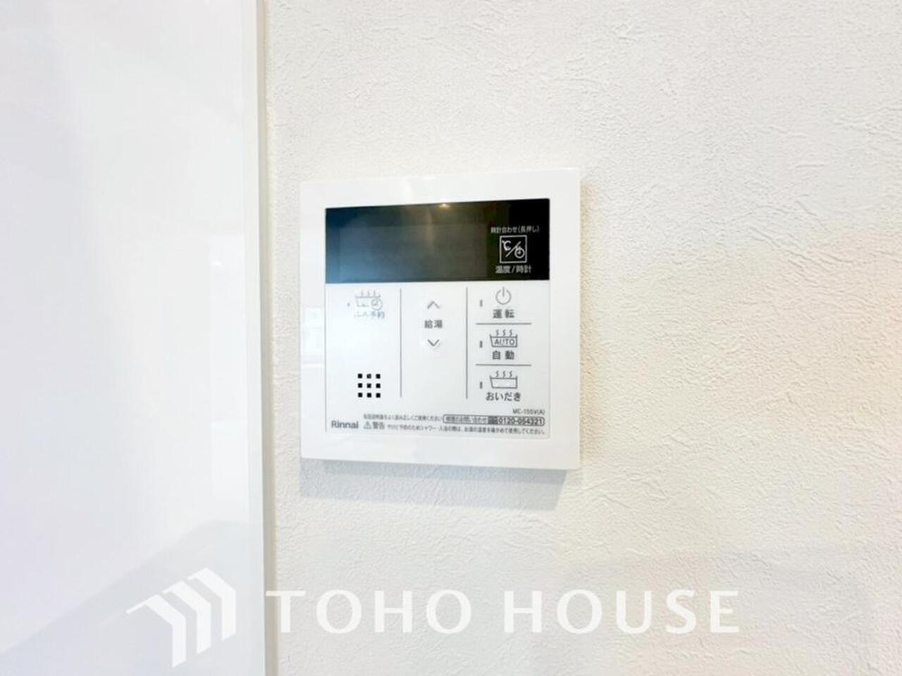 お風呂場と台所に操作リモコンがあり、キッチン近くにある給湯リモコンは、お料理の最中でもリビングで寛いでいるなかでもボタン一つで簡単に沸かせて便利ですね。