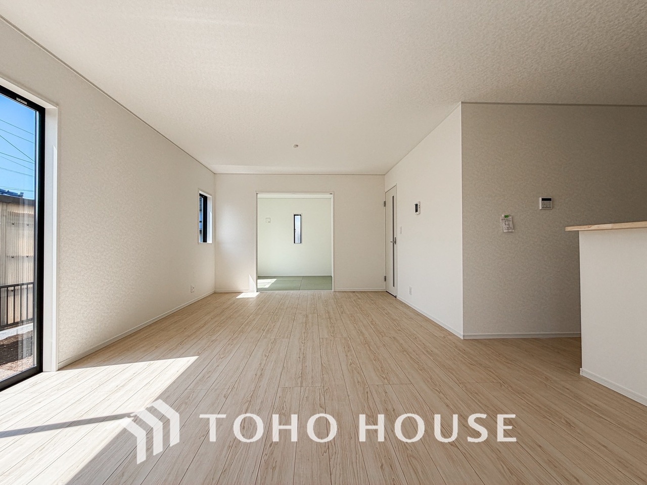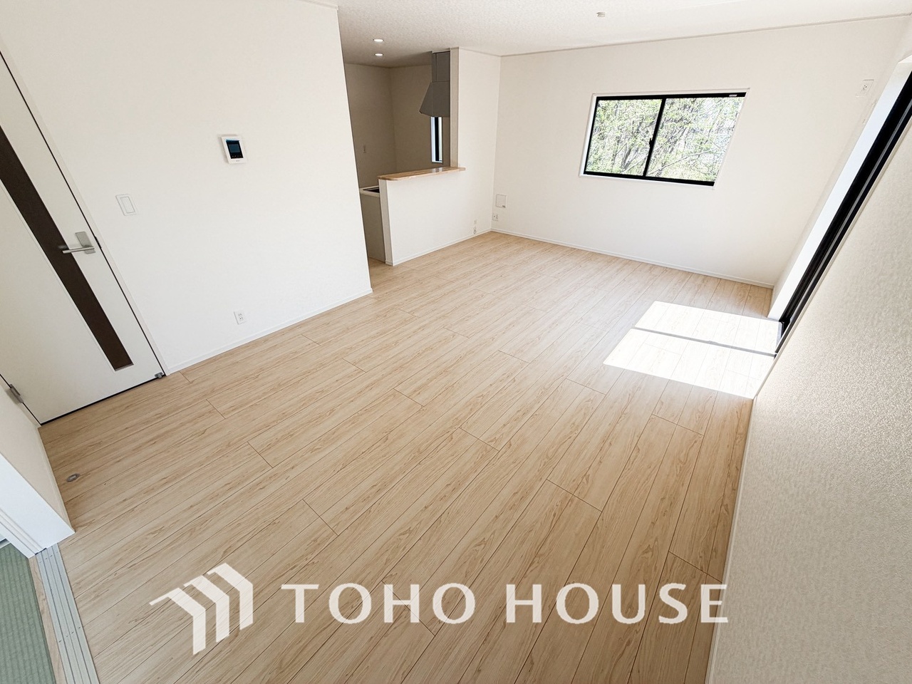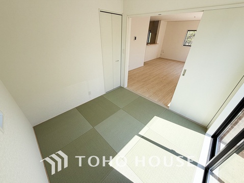 広々した開放感あるリビングの中にある癒しの和空間。家族団らんの場に和のテイストが自然にマッチ。