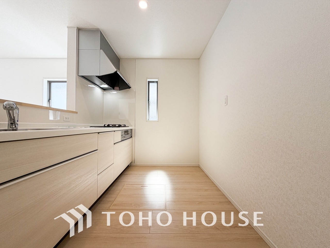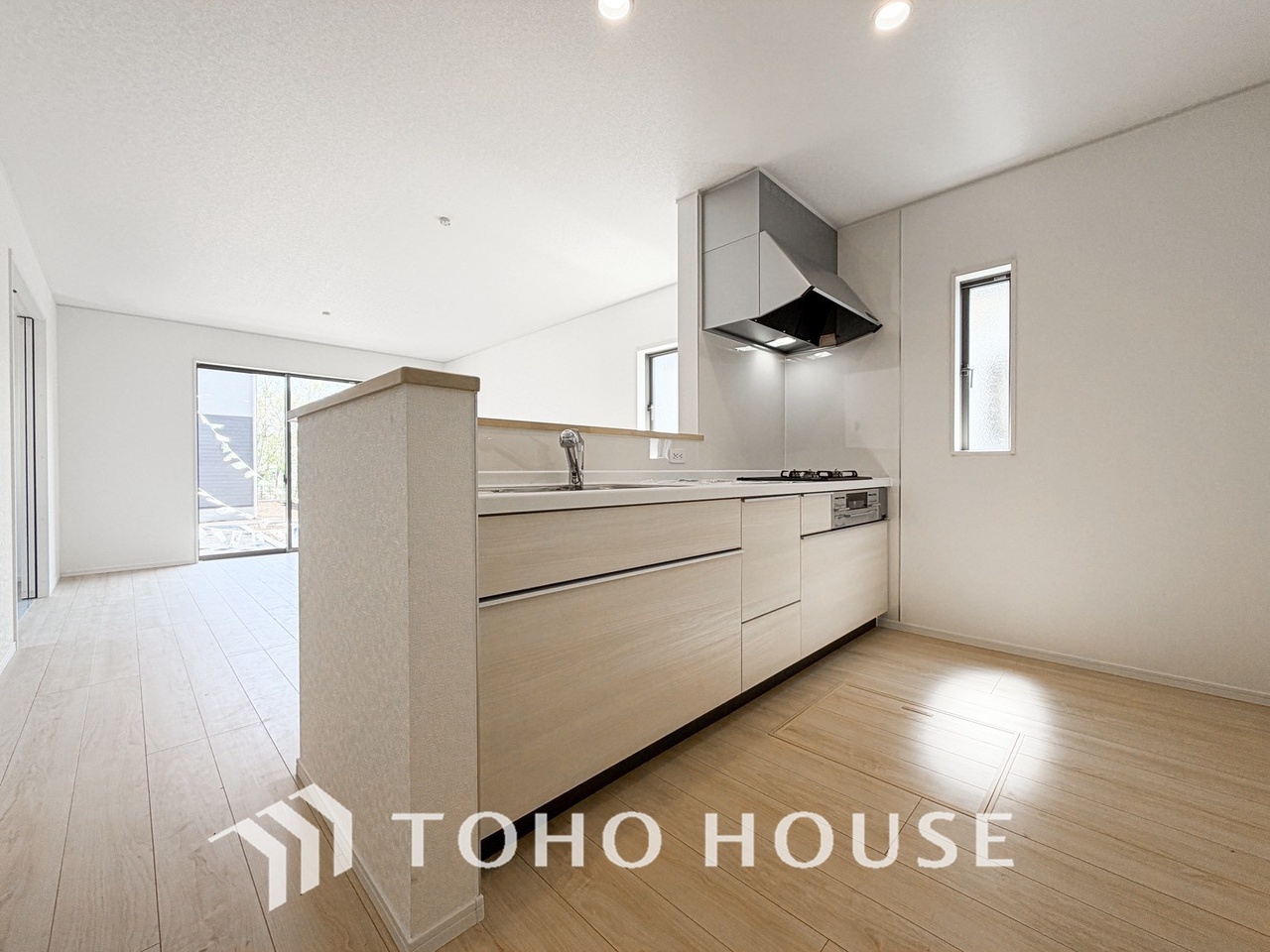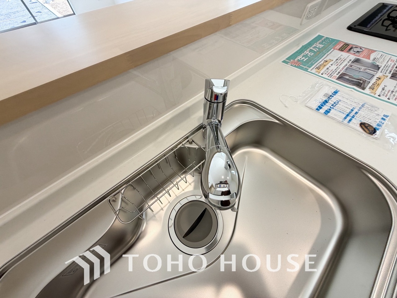 充実した収納スペースを搭載したシステムキッチンは、日々の家事がはかどります。