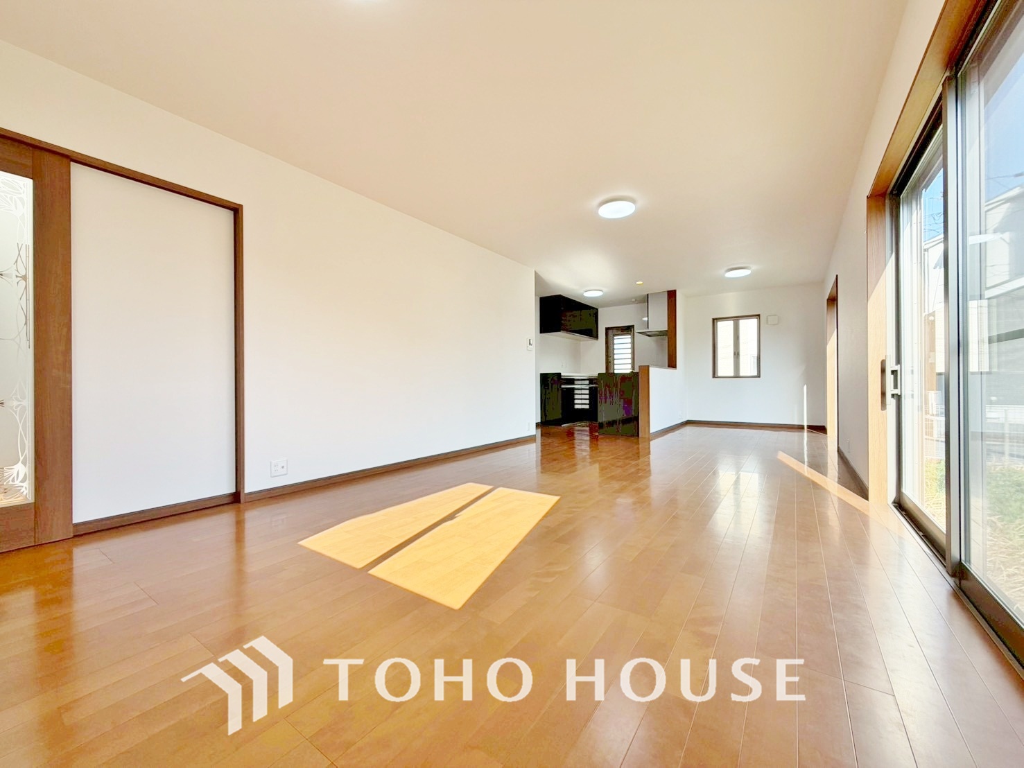 広いLDKでは家族が集まり一緒の時間を過ごせる工夫がされております。