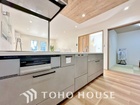 ビルトイン食器洗浄乾燥機付きのシステムキッチン。毎日の家事負担を軽減する嬉しい設備です。