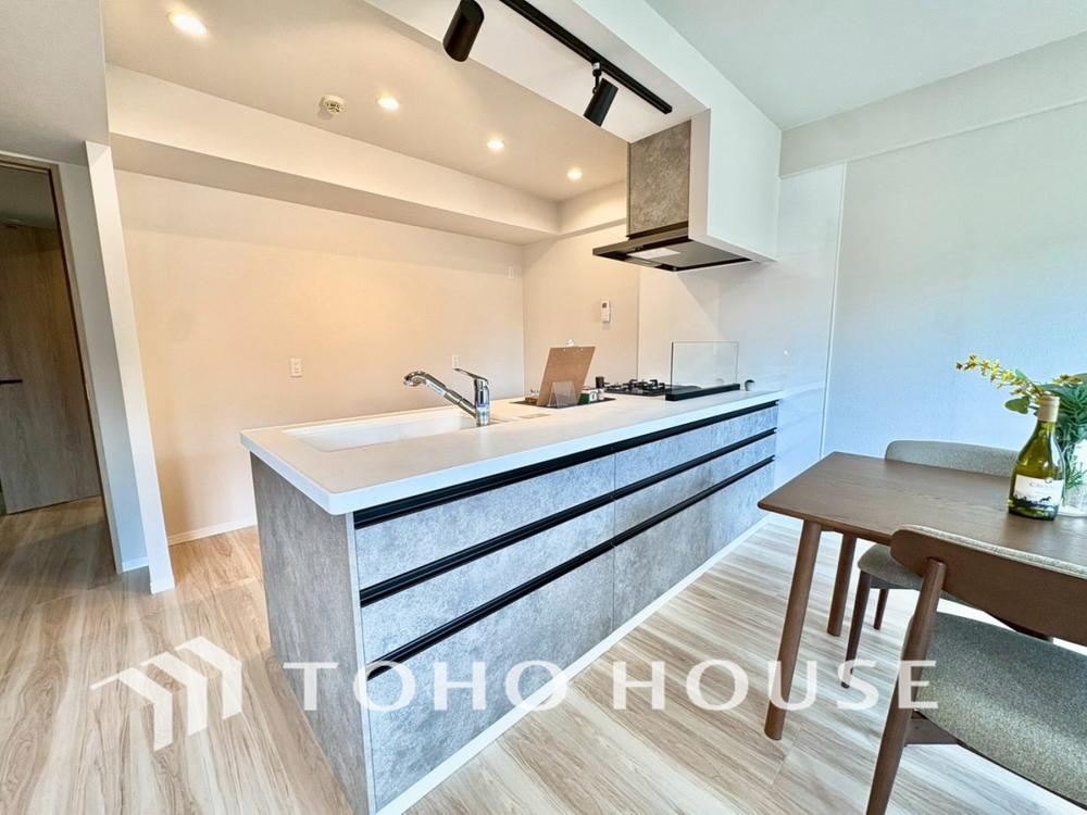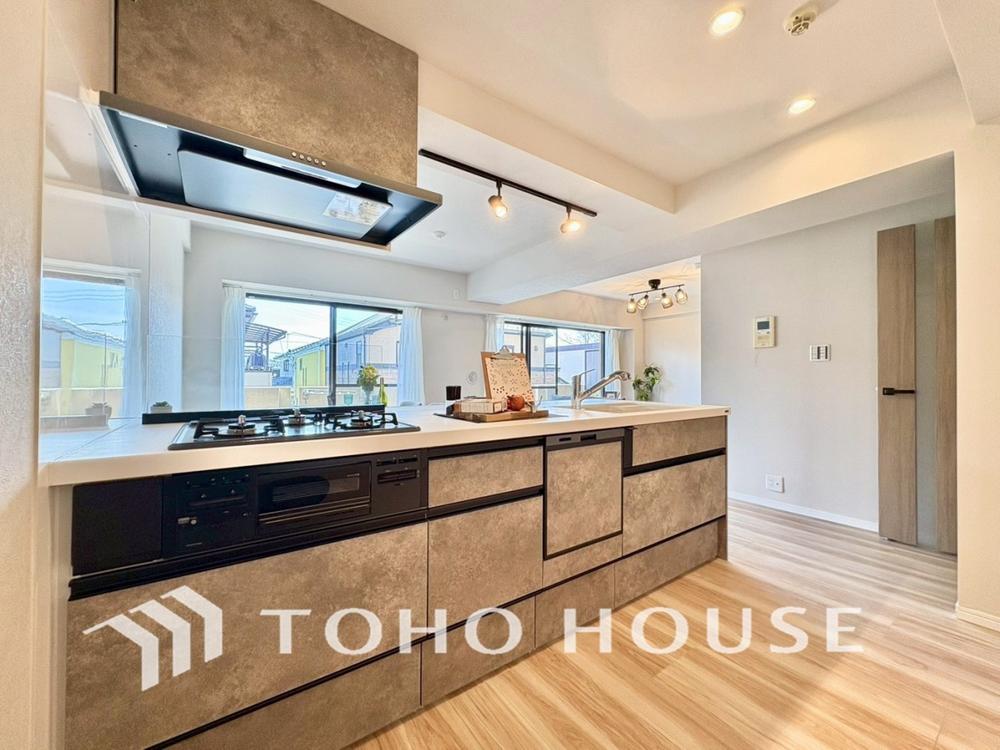 家族みんなでゆったりと調理や食事の準備ができる十分な広さを確保した、快適なキッチンスペース。