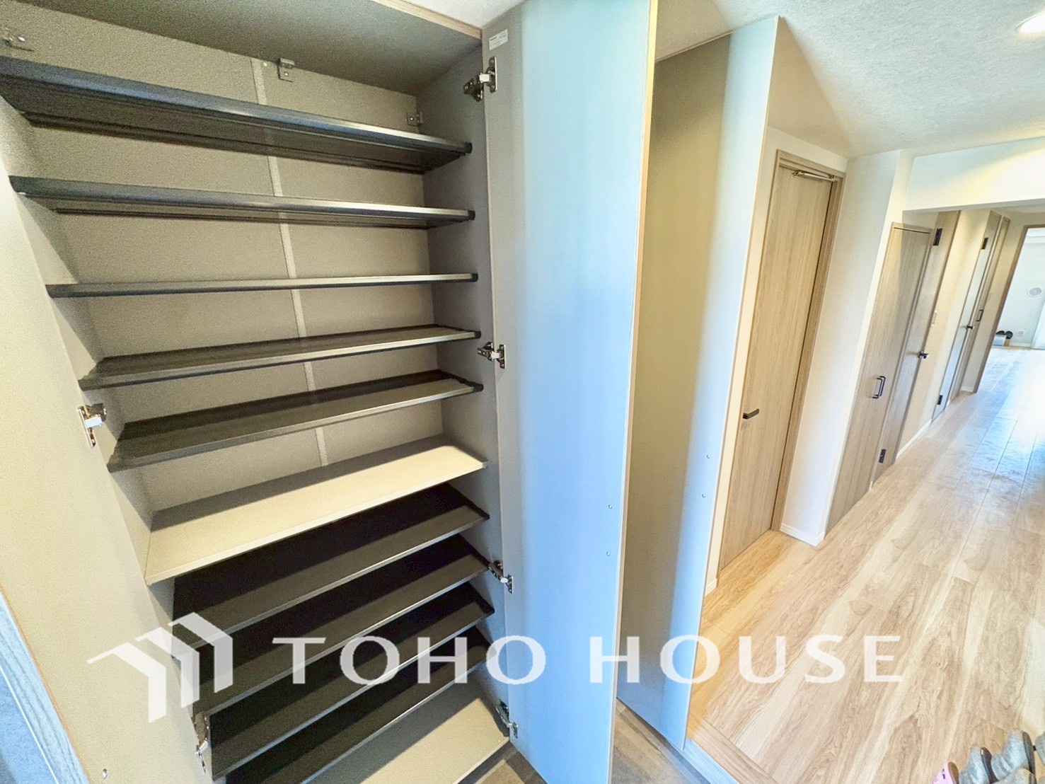 人を迎え入れる最初の場所だからこそ、清潔感がある空間にして頂ける様シューズボックスを設置しました。