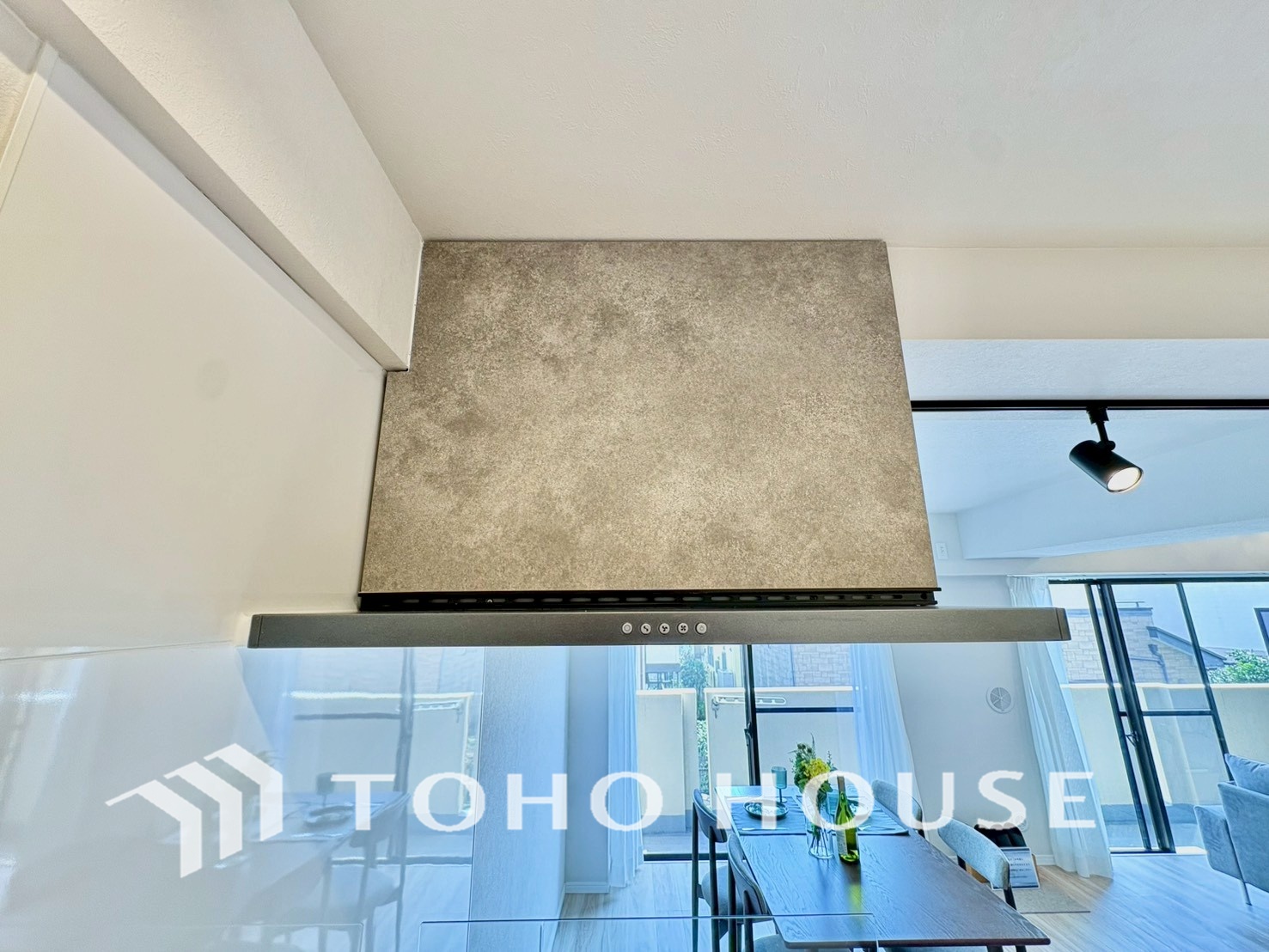 キッチンの換気扇はスタイリッシュなデザインで、日々のお手入れもラクラクな仕様となっております。
