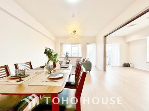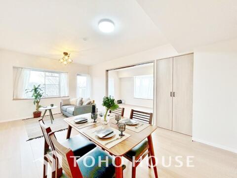 2WAY利用ができるリビング隣接の洋室。スライドドアを開放し大型リビングとしてもお使いいただけます。