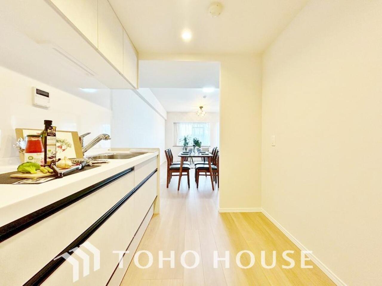 大型の冷蔵庫も配置できる広々としたキッチンスペースでお料理や家事をスムーズに進めることができます。