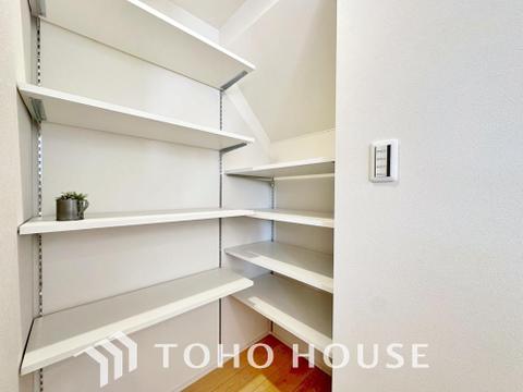 キッチンスペースには、買い置きした日用品や食品などを収納することが出来るように、パントリー収納を完備しております。