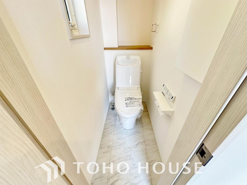 十分な広さと清潔感のあるカラーで纏まったおトイレ。時間に余裕とゆとりを持たせます。