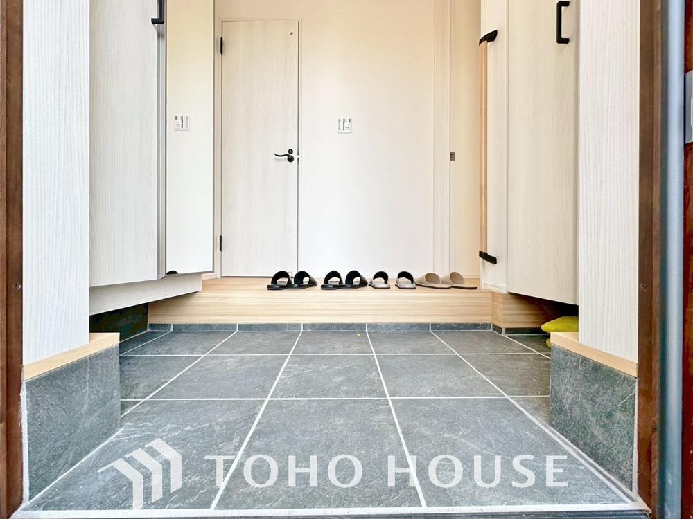 人を迎え入れる最初の場所だからこそ、清潔感が大事。ゆとりあるシューズインクロークも設置しました。