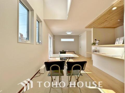 忙しい朝でも、しっかり家族が揃って食事をして頂けるゆとりある大きさのダイニングスペース。