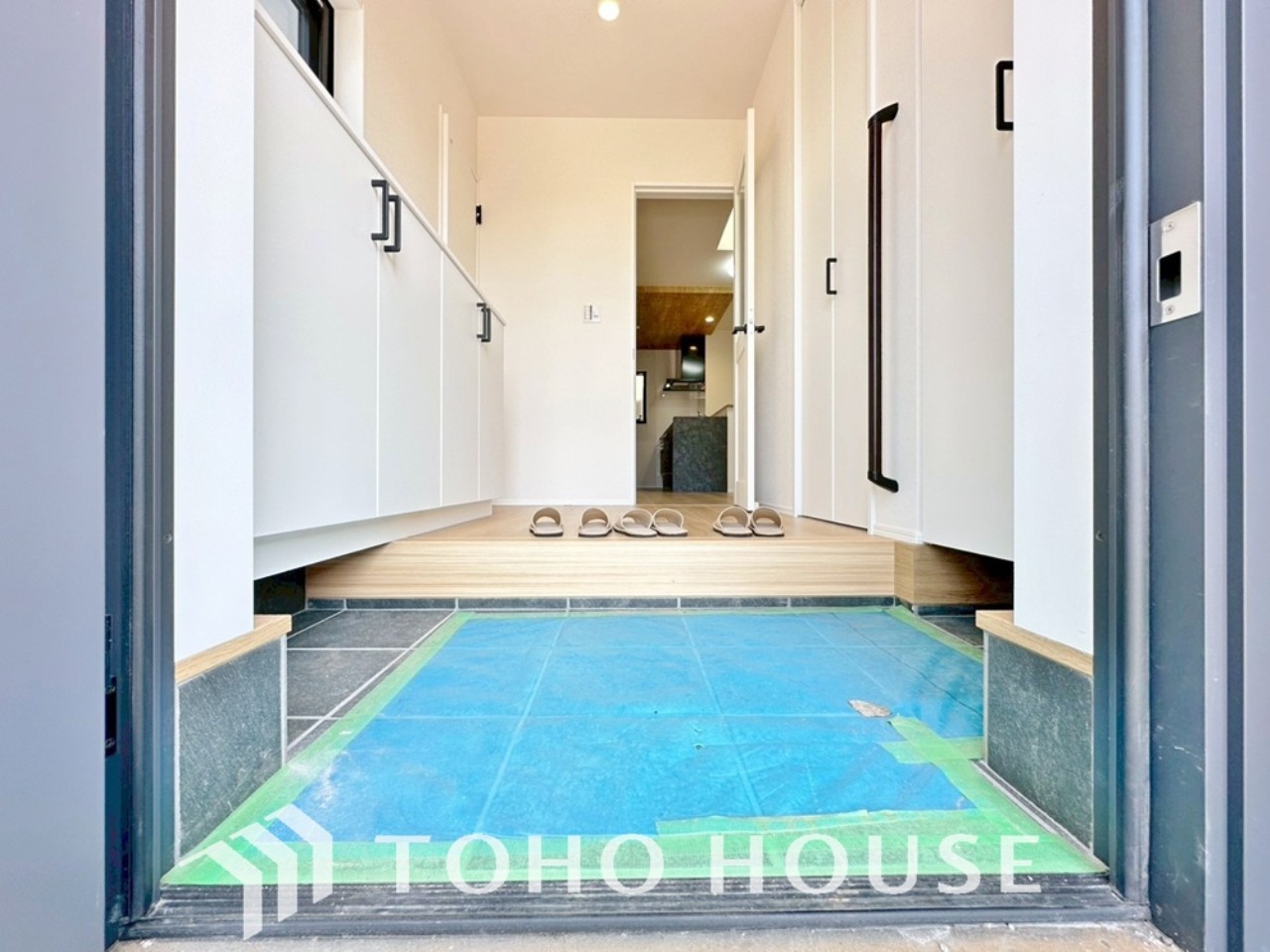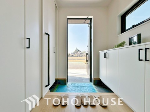人を迎え入れる最初の場所だからこそ、清潔感が大事。ゆとりあるシューズインクロークも設置しました。