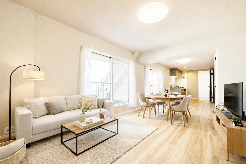 爽やかな通風と採光を存分に感じる事が出来る空間。毎日の暮らしに癒しをもたらす居心地の良いリビング。