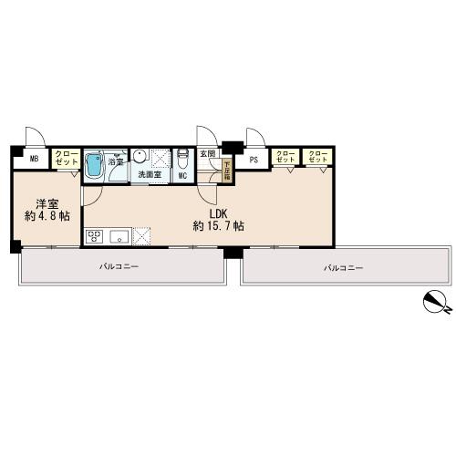 | 間取り | 1LDK | 専有面積 | 47.97m²(壁芯) |