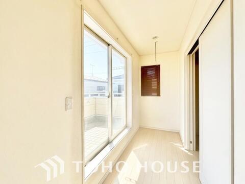 暖かい陽ざしが差込むバルコニー。晴れた日には、洗濯物が良く乾きます。風通しも良好です。