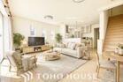 爽やかな通風と採光を存分に感じる事が出来る空間。毎日の暮らしに癒しをもたらす居心地の良いリビング。