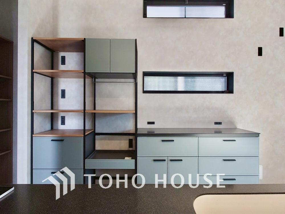備え付けのカップボードを完備。新たに収納棚を設置する手間も省けますね。