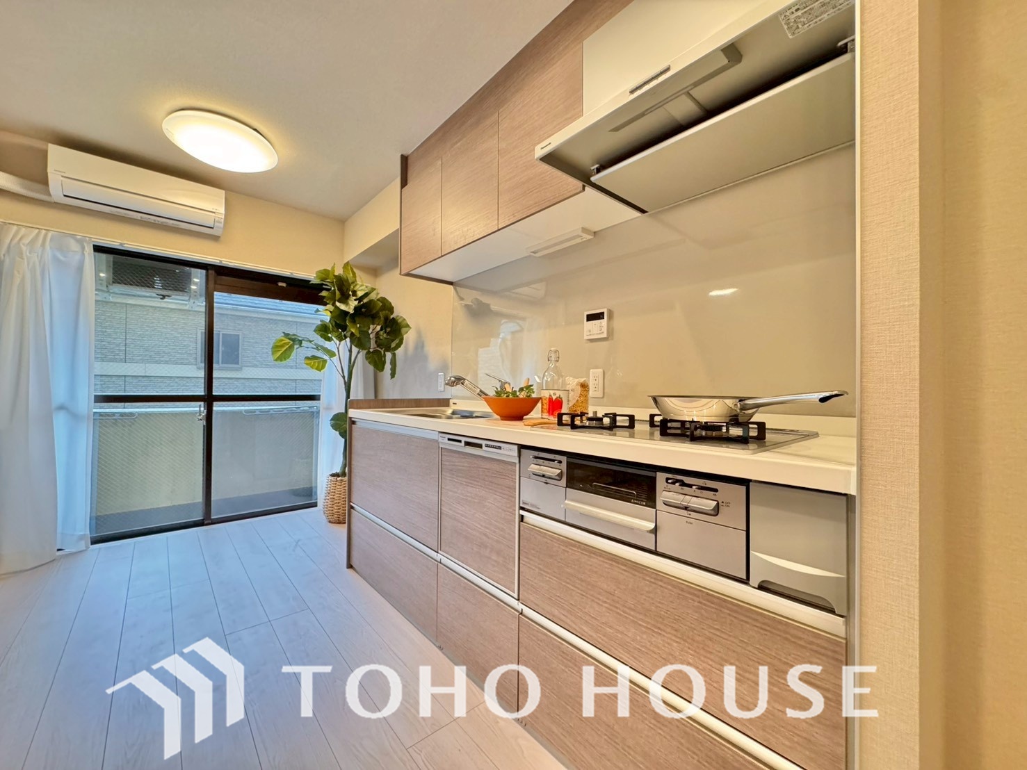 キッチンの換気扇はスタイリッシュなデザインで、日々のお手入れもラクラクな仕様となっております。