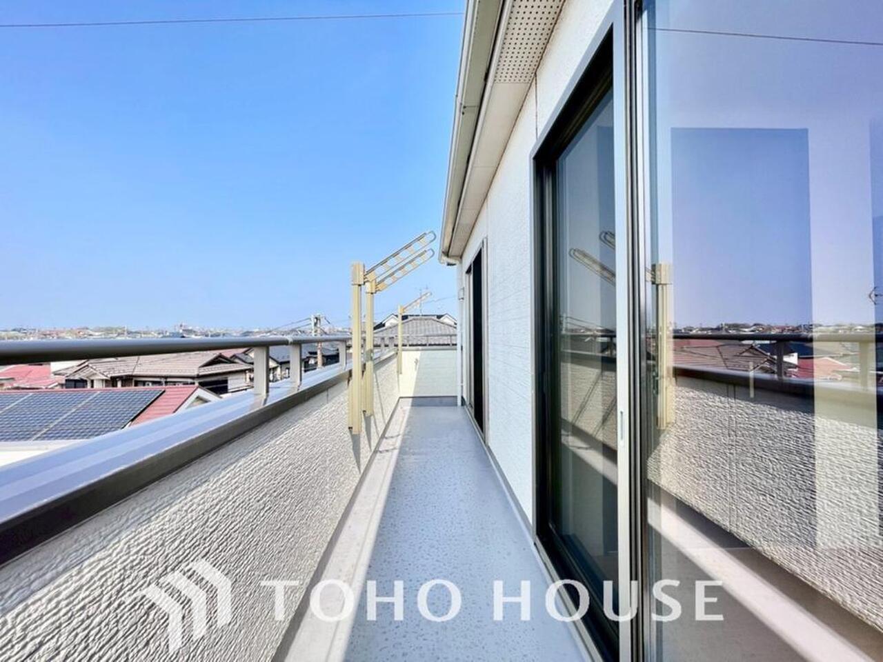暖かい陽ざしが差込むバルコニーは、晴れた日には、洗濯物が良く乾きます。また、風通しも良好です。