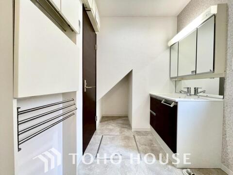 お家の中でも特にプライベートスペースとなる洗面所は、洗濯場所と浴室を同じ空間でまとめております。