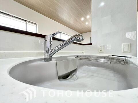 夫婦そろってキッチンに立っても調理がしやすく余裕の広さ。家事をしながら会話も弾みます。