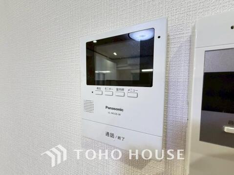 誰が来てもわかる様にモニター付きインターホンを設置。家事導線を考慮した個所に設置し、防犯性と利便性に優れ快適と安らぎを合わせた優しい設計。