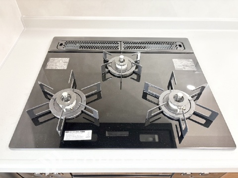 3口コンロは一度に複数のお料理を作ることができるメリットがあります。毎日のキッチンタイムを効率よく。