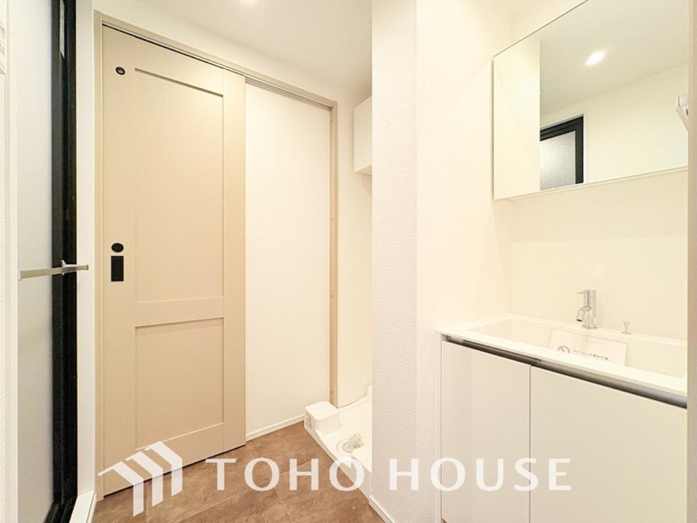 お家の中でも特にプライベートスペースとなる洗面所は、洗濯場所と浴室を同じ空間でまとめております。