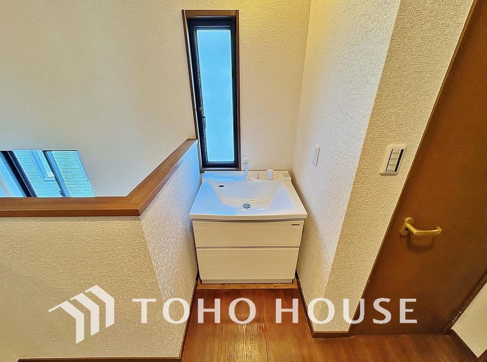 2階のトイレの脇にも、トイレから手洗いをすることが出来るように、洗面台を設けております。