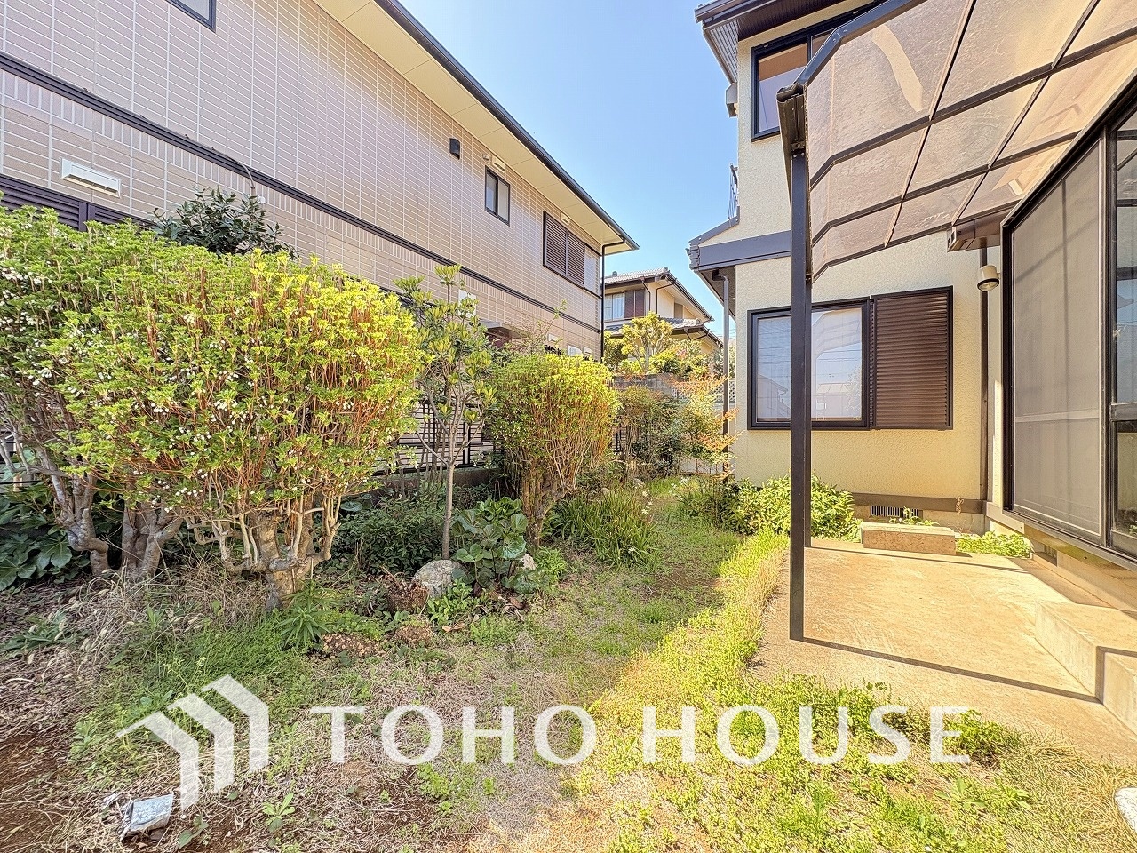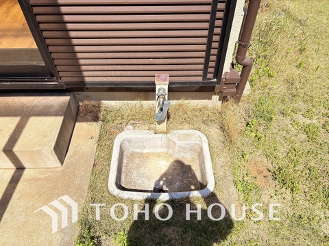 お庭には立水栓がございます。お車やお庭の手入れや、外回りのお掃除の際にあると、便利です。