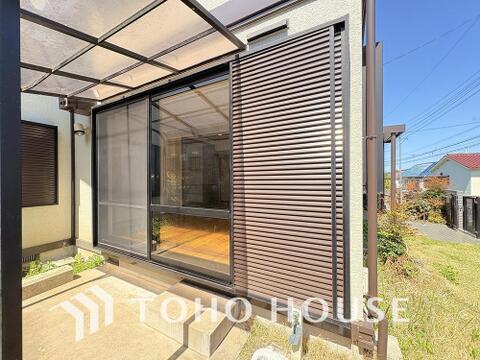 1階のリビング隣接したお庭の部分には、テラス部分をご用意。洗濯物を干した際に、少しの雨であれば、洗濯物が濡れにくいです。