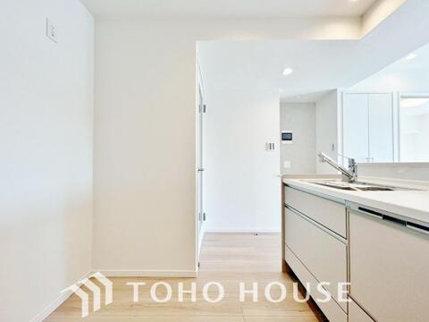 大型の冷蔵庫も配置できる広々としたキッチンスペースでお料理や家事をスムーズに進めることができます。