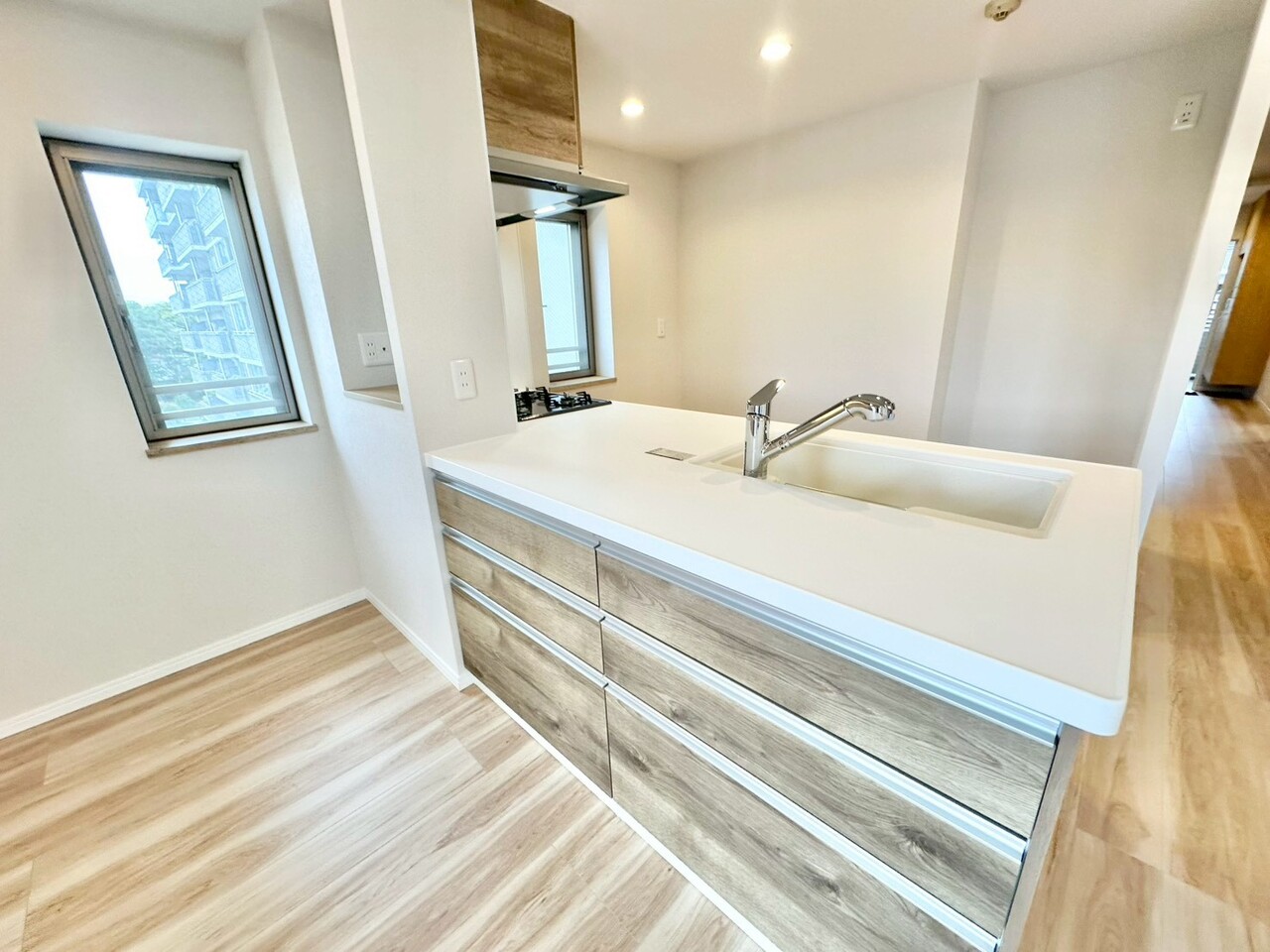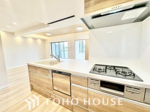 対面キッチンは、目線の先が空間の広がりのあるリビングやダイニングなので、開放感を感じられます。