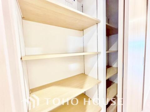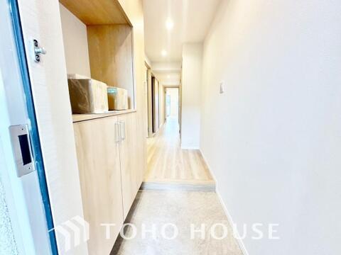 建物内部の収納には拘りました。共有部分に設けた収納。お荷物が多い方にも安心です。
